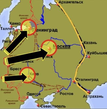 #цитата_дня „Необъятность России пожирает нас“ — Герд фон Рундштедт (командующий группой армий «Юг») Цель немецкого генштаба — дойти до «линии А–А» (Архангельск - Астрахань). На этой линии Третий Рейх хотел «закрыть» вопрос с СССР. План предполагал полное уничтожение европейской части СССР, а за Уралом — создание буфера без промышленности, логистики и сопротивления. Чтобы понять масштаб линии А-А представим расстояние от Берлина до Архангельска - это 3 000 км. Для сравнения, вся Франция помещается в это расстояние три раза. Чем дальше продвигались немецкие части, тем больше ресурсов сжирала география России и тем всё более чувствительнее становились поражения от Красной Армии. Немцы так и не дошли до линии А-А. На севере остановились под Ленинградом – 900 км до Архангельска, в центре завязли под Москвой – 900 км до Казани, на юге Сталинград не пустил к Астрахани – 400 км.