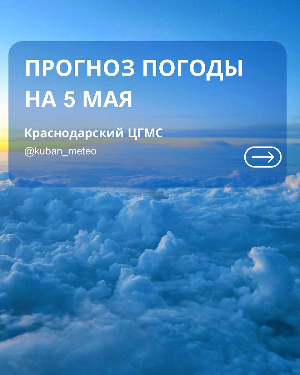 Специалисты Краснодарского ЦГМС подготовили прогноз погоды на 5 мая👇🏼