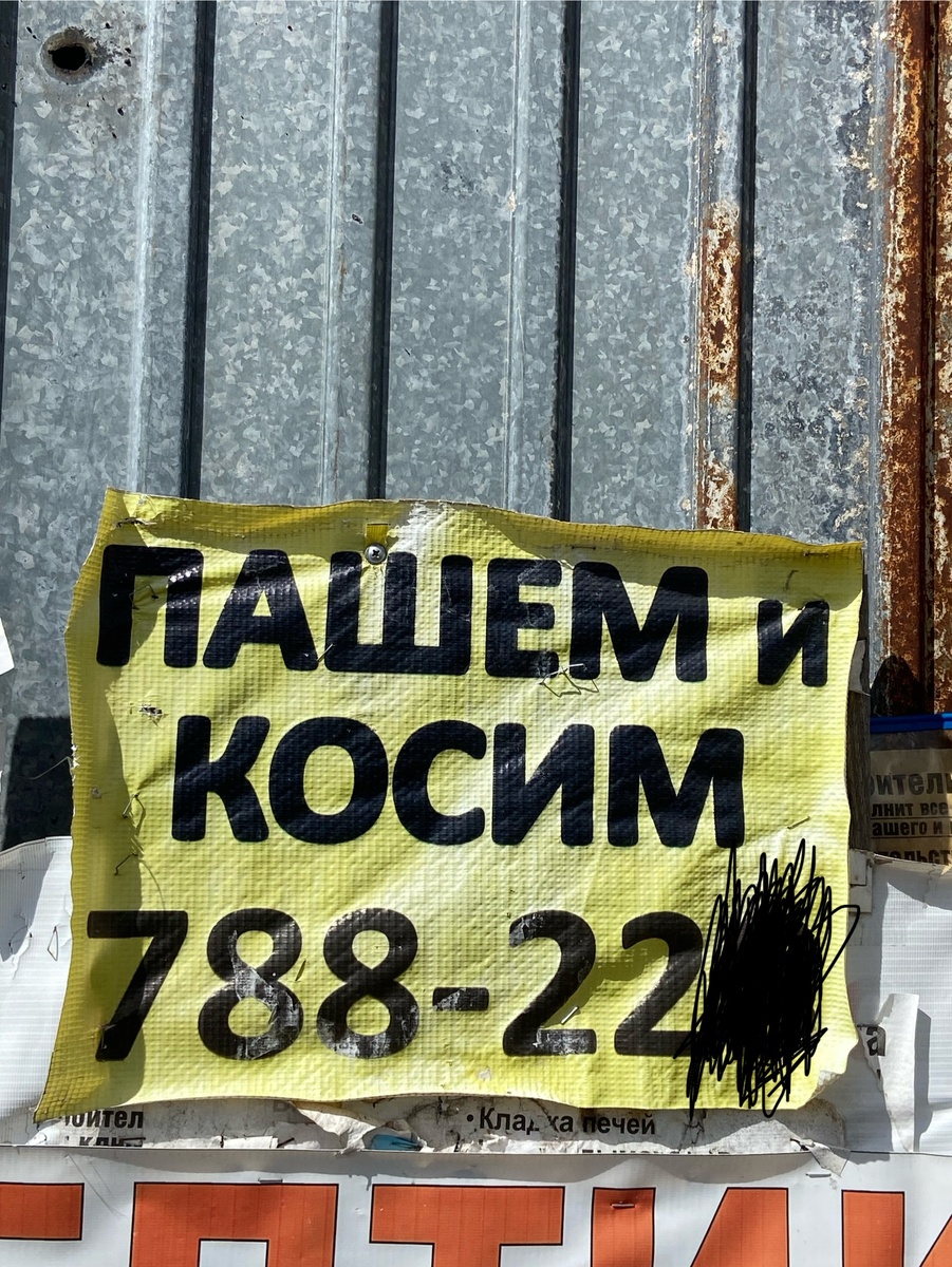 В прошлом году обратил внимание на это объявление, оно было на каждом шагу в СНТ по нашему тракту . Стало интересно реально ли так востребована данная услуга??? В прошлом году мы сами впервые стали дачниками так что триммер покупать все равно было необходимо. Решил немного вложится в рекламу и проверить😜 Спойлер - заказы реально идут и их становится все больше. И так - по затратам: лист осб - 700 рублей макет -500 ( но я сделал сам ) печать баннеров (40*50 см) 20 шт -1500 Мотокоса - 3346 рублей ( можно в сплит по 800 рублей платеж). бензин и масло 200 рублей. Итого- 6246 рублей. Изучил предложения конкурентов- за сотку цена от 400 рублей, если участок запущен до и 1000 за сотку не предел. Осб мне напилили бесплатно в строительном магазине на куски 40*50 см я их обшил Банерами при помощи степлера и разместил в соседних СНТ . Для эксперимента покосил свой участок 8 соток за 2 часа ( первый раз все таки) . Пока косил подошел мужчина лет 70 с соседней улицы, попросил покос