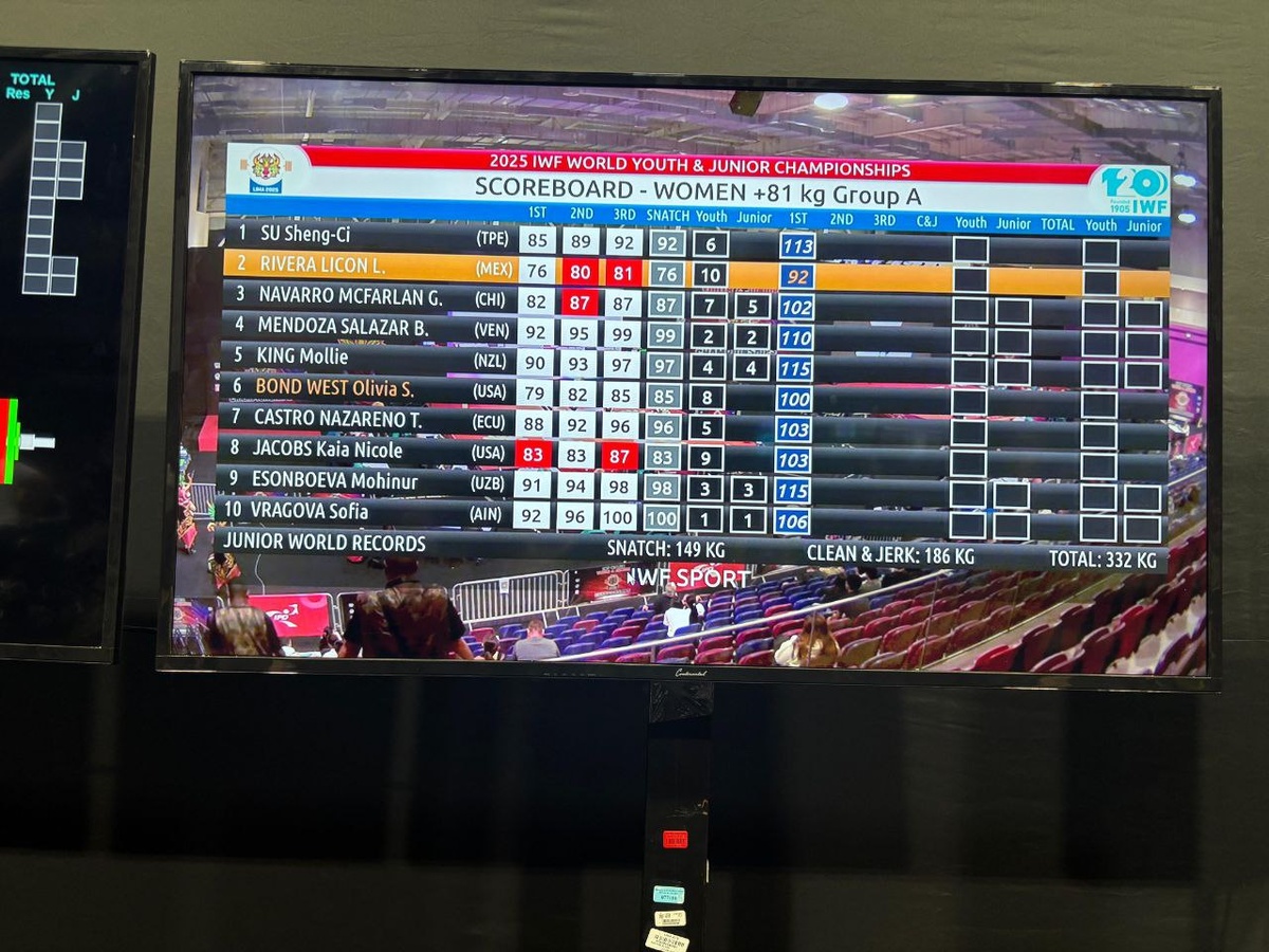 Софья Врагова, в/к 81+ завершила выступление в рывке с результатом 92/96/100 кг и золотой медалью 🥇