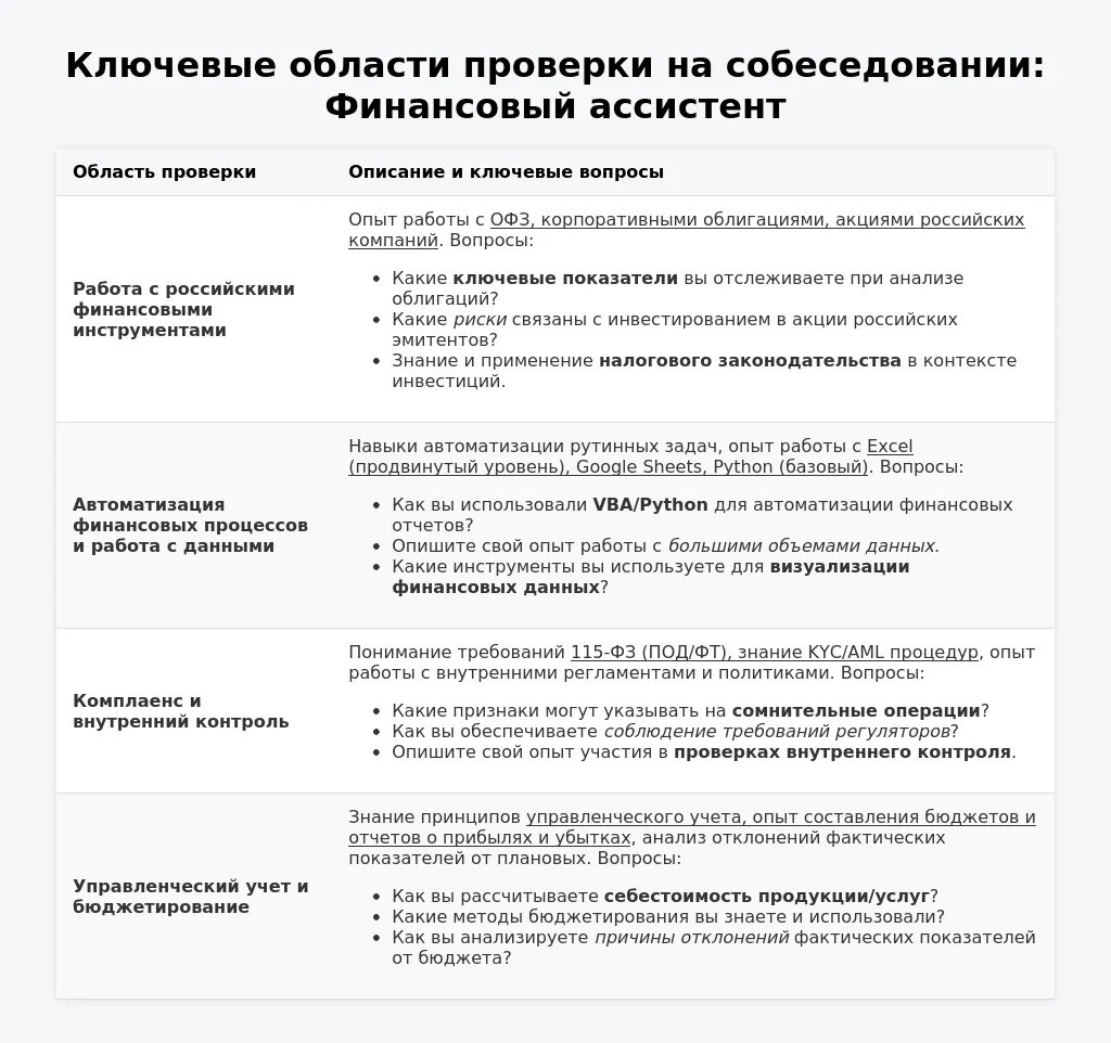 Подготовка к собеседованию на позицию финансового ассистента