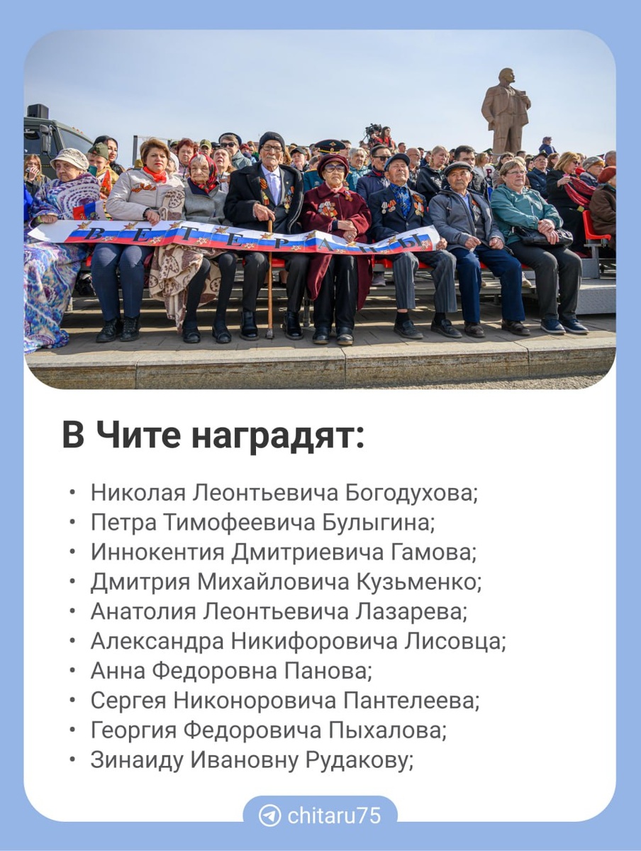Почти 40 ветеранов Великой Отечественной войны в Забайкалье наградят званием почетного гражданина региона. ⬇️ 🟦 Подписаться | Предложить новость