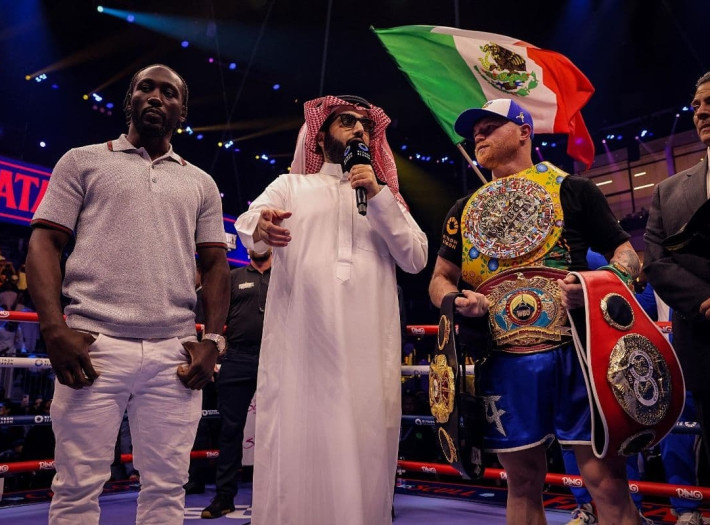 Поединок между Саулем «Канело» Альваресом и Теренсом Кроуфордом, запланированный на 12 сентября, станет первым вечером бокса новой боксерской лиги TKO Boxing, организованной в начале этого года Турки Аль аш-Шейхом совместно с ТКО Group, материнской компанией UFC и лиги реслинга WWE. Турки Аль аш-Шейх анонсировал этот поединок вчера в Эр-Рияде в присутствии обоих боксеров сразу же после того, как Альварес победил Уильяма Скулла и вновь стал абсолютным чемпионом мира во втором среднем весе. Тогда же Альваресу был вручен новый пояс чемпиона The Ring и именно его Альварес будет защищать в поединке против Кроуфорда, по словам Аль аш-Шейха, а глава UFC Дана Уайт займется организацией этого вечера бокса, в котором зрителей ждет много сюрпризов. «Мы проведем «бой столетия» с брендом Riyadh Season 12 сентября на стадионе Allegiant в Лас-Вегасе. Легендарный Сауль «Канело» Альварес будет защищать свой пояс The Ring в бою против великого Теренса Кроуфорда. Телевизионная платформа будет скоро объя