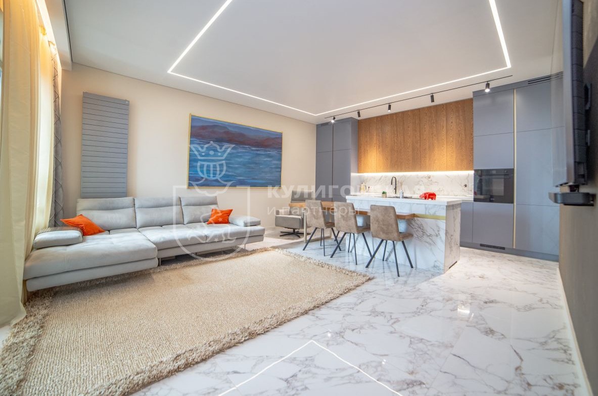 Квартира предлагается с полным комплектом интерьерного, бытового и технического оснащения, где каждый элемент, от элегантных дверей до премиальной бытовой техники, призван создать атмосферу уюта и гармонии.