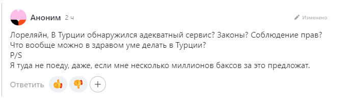 Подобные комментарии встречаются часто под моими обзорами отелей Турции.