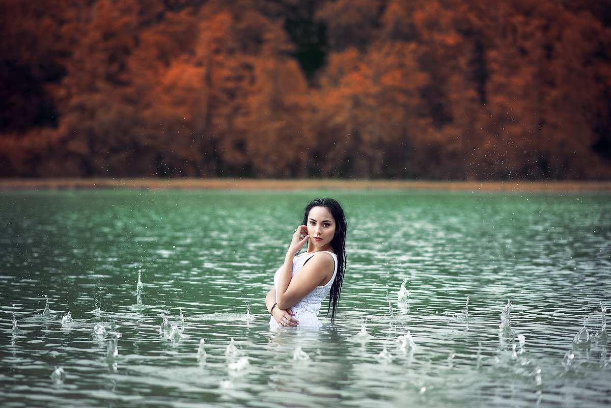Пришли на берег озера. Снежана немного подумав, стянула с себя футболку и скомандовала Глебу: