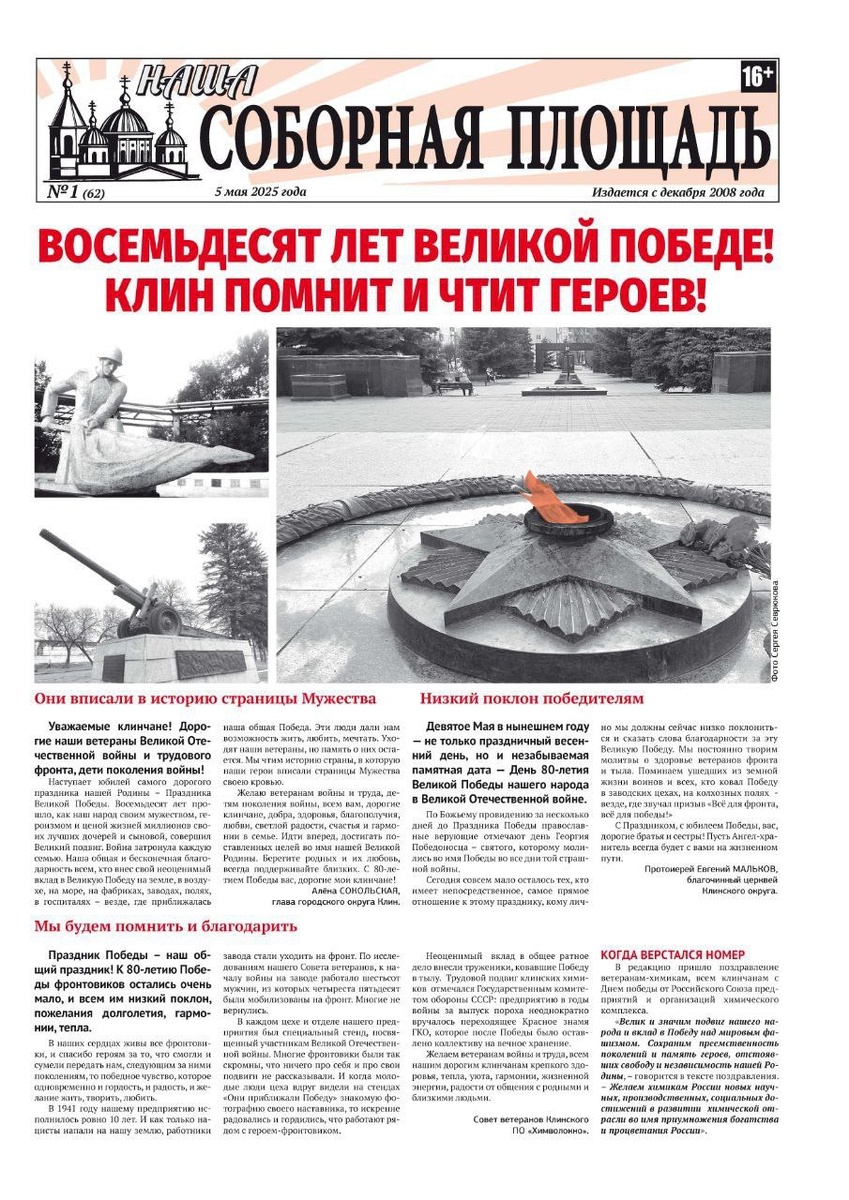 Вышел в свет очередной номер клинской газеты «Наша Соборная Площадь», он полностью посвящен юбилею Великой Победы.