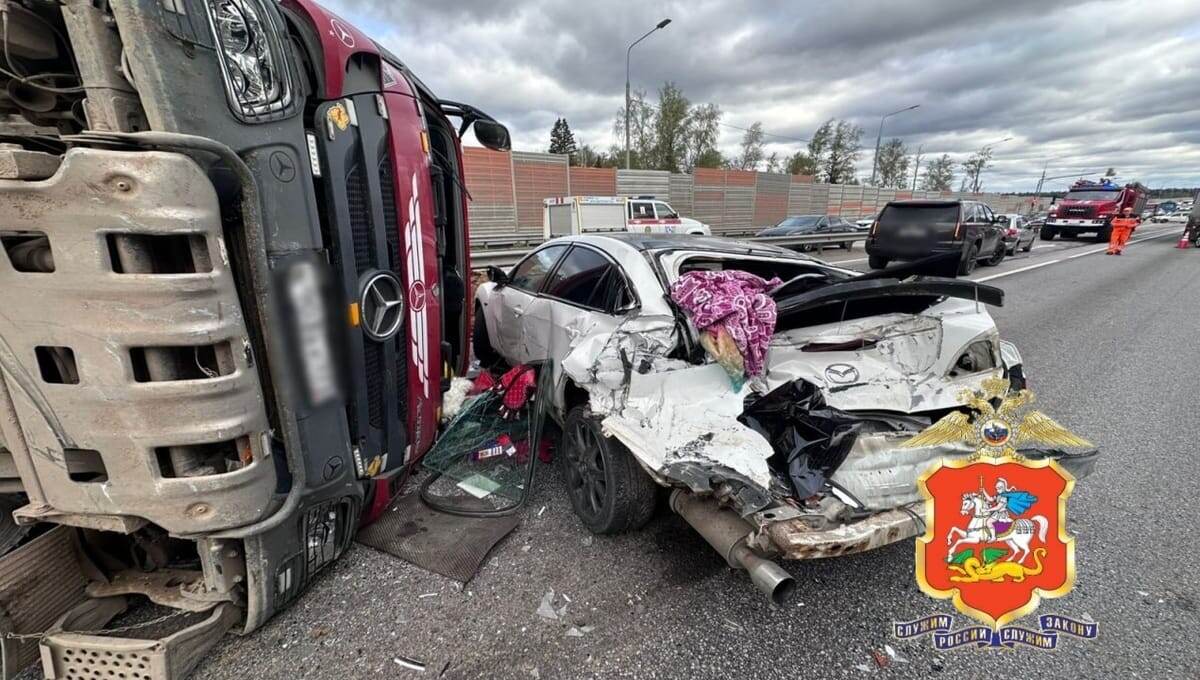 Серьёзное ДТП произошло утром 5 мая на 314 километре ЦКАД в Истре. По информации пресс-службы ГУ МВД России по Московской области, водитель фуры «Скания» допустил столкновение с грузовиком «Мерседес», ехавшим впереди в том же направлении. Возможно, дальнобойщик заснул за рулём. В результате полученных травм он погиб на месте. Второй грузовик, перевозивший грунт, от удара перевернулся, земля рассыпалась по трассе. Водитель получил телесные повреждения.