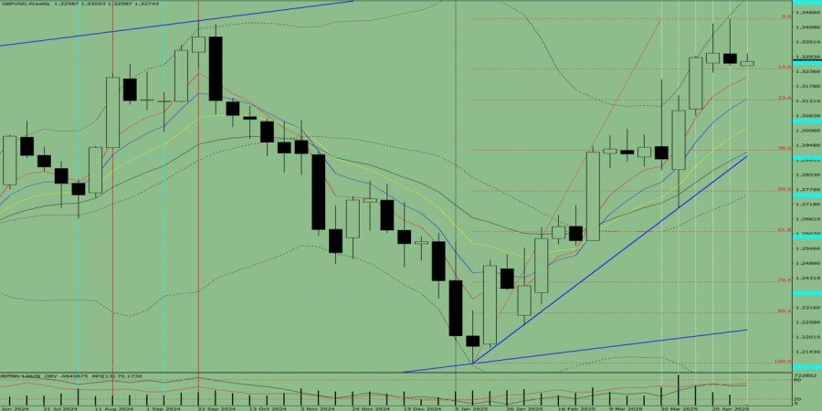 https://basechop.ru/wordpress/?p=41204 Трендовый анализ. На этой неделе цена от уровня 1.3267 (закрытие последней недельной свечи) может продолжить движение вниз с целью 1.3125 – откатный уровень 23.6% (красная пунктирная линия). При тестировании этого уровня цена может начать движение вверх с целью 1.3216 – 5 средняя ЕМА (красная тонкая линия). Рис. 1 (недельный график). Комплексный анализ: – индикаторный анализ – вниз; – уровни Фибоначчи – вниз; – объёмы – вниз; – свечной анализ – вниз; – трендовый анализ – вниз; – линии Боллинджера – вниз; – месячный график вниз. Вывод по комплексному анализу: нисходящее движение. Общий итог расчёта свечи валютной пары GBP/USD по недельному графику: цена на неделе, вероятней всего, будет иметь нисходящую тенденцию с отсутствием первой верхней тени у недельной чёрной свечи (понедельник – вниз) и отсутствием второй нижней тени (пятница – вниз). Альтернативный сценарий: цена от уровня 1.3267 (закрытие последней недельной свечи) может продолжить…