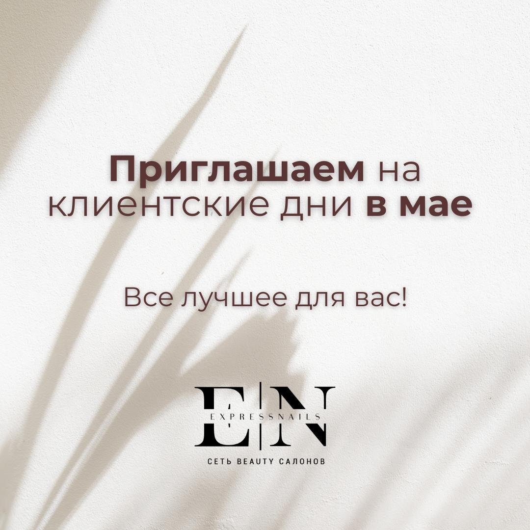 ✨Майские клиентские дни в EN Beauty! Приглашаем вас на особенные дни красоты и заботы! 📅Дата: 12.05 🛍️Бренд: LADOLEAY 📍Салон: ул. М.Никитская, д.2/1 📅Дата: 13.05 🛍️Бренд: Evercell и Lbb 📍Салон: ул. Береговой проезд, д.5, к.2 📅Дата: 15.05 🛍️Бренд: LADOLEAY 📍Салон: ул. Береговой проезд, д.5, к.2 📅Дата: 16.05 🛍️Бренд: LADOLEAY 📍Салон: ул. Б.Никитская, д.35 📅Дата: 18.05 🛍️Бренд: LADOLEAY 📍Салон: ул. Мерецкова д.4 📅Дата: 21.05 🛍️Бренд: Evercell и Lbb 📍Салон: ул. Гризодубовой, д.2 📅Дата: 26.05 🛍️Бренд: LADOLEAY 📍Салон: ул. Остоженка, д.25 📅Дата: 27.05 🛍️Бренд: EN Beauty 📍Салон: ул. Остоженка, д.25 📅Дата: 30.05 🛍️Бренд: Evercell и Lbb 📍Салон: Кутузовский пр-т, д.27 Что вас ждёт? 🌱Бесплатные консультации от экспертов 🌱Специальные предложения и бонусы 🌱Уютная атмосфера и угощения Создайте своё весеннее преображение вместе с нами!Записывайтесь заранее, количество мест ограничено!