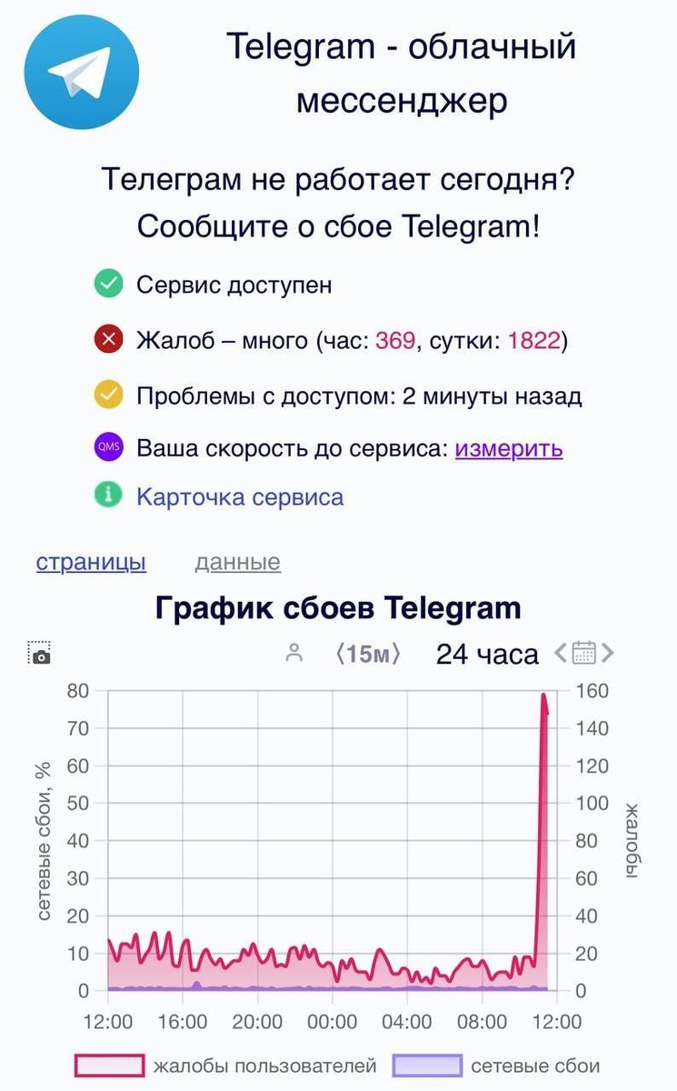 ⚡️Очередной масштабный сбой идет у операторов сотовой связи и у Telegram. Пользователи из разных регионов жалуются на то, что мессенджер плохо работает на телефонах.