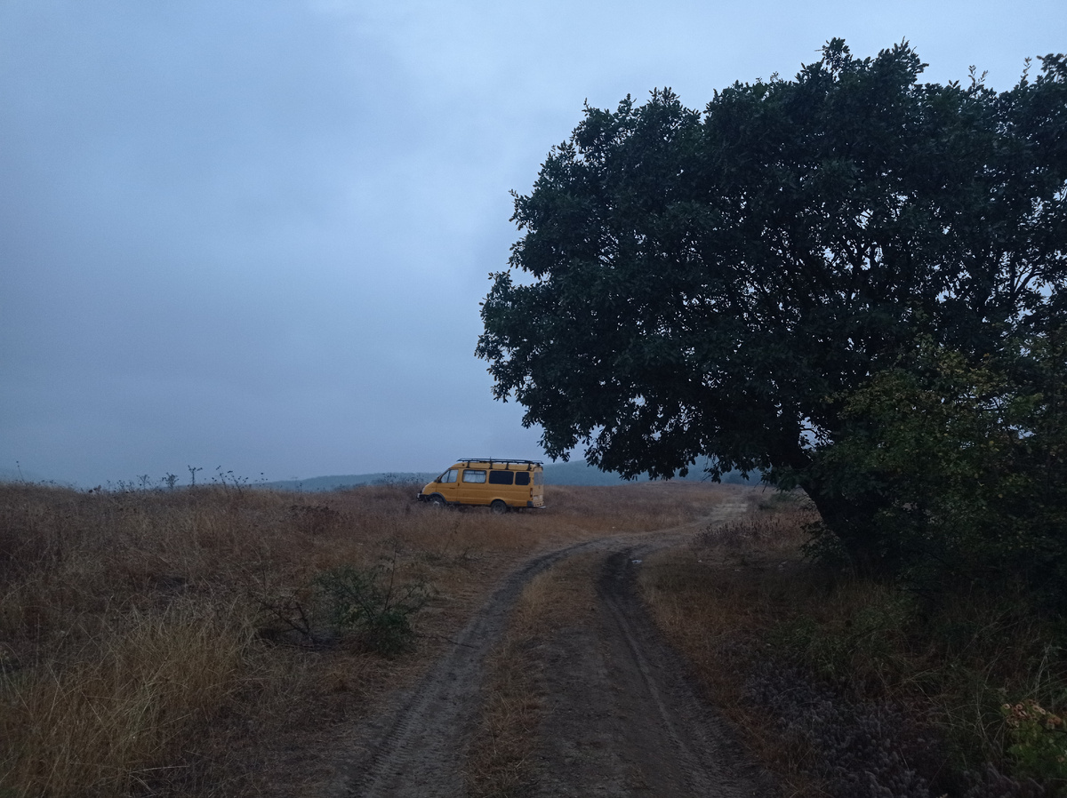 Утром проснулись в поле, вдали видны горы.Прохладно, моросит дождь, легкий туман. Позавтракали и в путь…периодически замедляемся что бы пропустить отары овец, которые перетекают медленно через дорогу. Именно перетекают, так как идут не торопясь, единой массой…