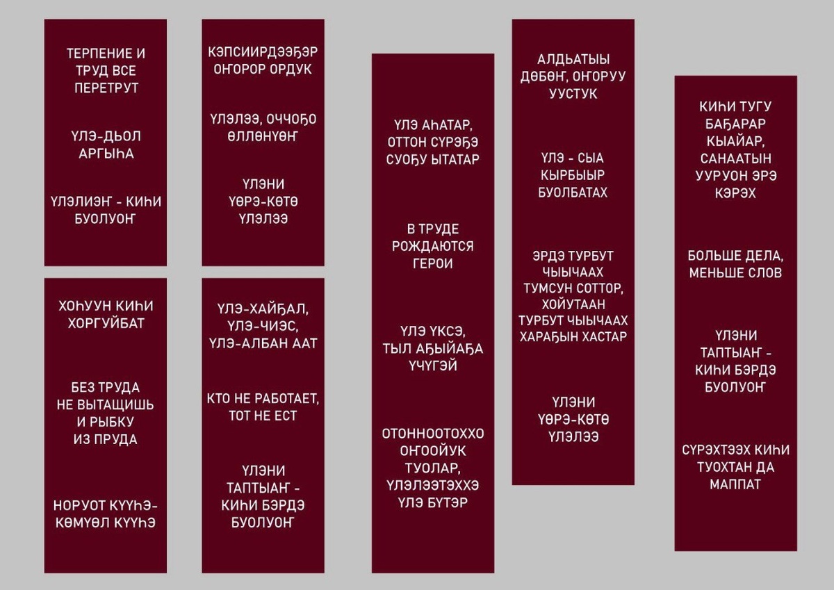 🤝«Үлэ киһини киэргэтэр» («Труд украшает человека») В Якутске в сквере Тружеников тыла и детей войны состоялось торжественное открытие арт-объекта «Үлэ киһини киэргэтэр» («Труд украшает человека»), посвященного вкладу якутского народа в победу в Великой Отечественной войне. Автор проекта – Александра Неустроева, преподаватель Якутского художественного училища и доцент АГИКИ. Изготовитель – Роман Терентьев, руководитель компании «Сырдык». Арт-объект в виде якутского слова «Үлэ» (труд) покрыт изречениями и поговорками о труде на якутском и русском языках. «Дети войны выросли, не зная радостей детства, трудясь наравне со взрослыми на сенокосе, на лесоповале, на полевых работах. Пусть дань памяти трудовой доблести нашего народа будет светлым примером для подрастающих поколений на долгие годы», - прокомментировала открытие арт-объекта Александра Неустроева. Проект реализован по инициативе и при финансовой поддержке Национального фонда «Барҕарыы» РС(Я) и народного депутата Ил Тумэн Викт