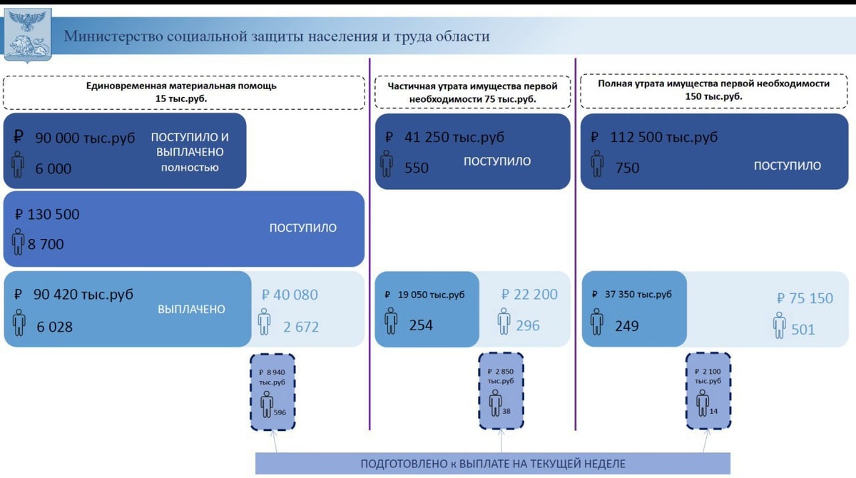 Жителям Белгородской области выплатили компенсации на общую сумму 90 миллионов рублей в связи с обстрелами. Указанная сумма была переведена 6028 гражданам, проживающим в Краснояружском и Ракитянском районах, которые были эвакуированы из опасной зоны. Перечисление средств на счета пострадавших началось в минувшую пятницу. Ожидается, что все компенсационные выплаты будут завершены до конца текущей недели. Общий объем финансирования, выделенного Правительством Российской Федерации для Белгородской области на эти цели, составляет 130,5 миллионов рублей. Кроме того, представители власти напомнили о распределении 2,5 миллиардов рублей между 486 жителями в качестве компенсации за утраченное жилье. С 2023 года подобные выплаты получили 4124 белгородца. В настоящее время администрация занимается подготовкой новой заявки для представления в Кабинет Министров. Необходимые документы будут направлены после завершения майских праздников.