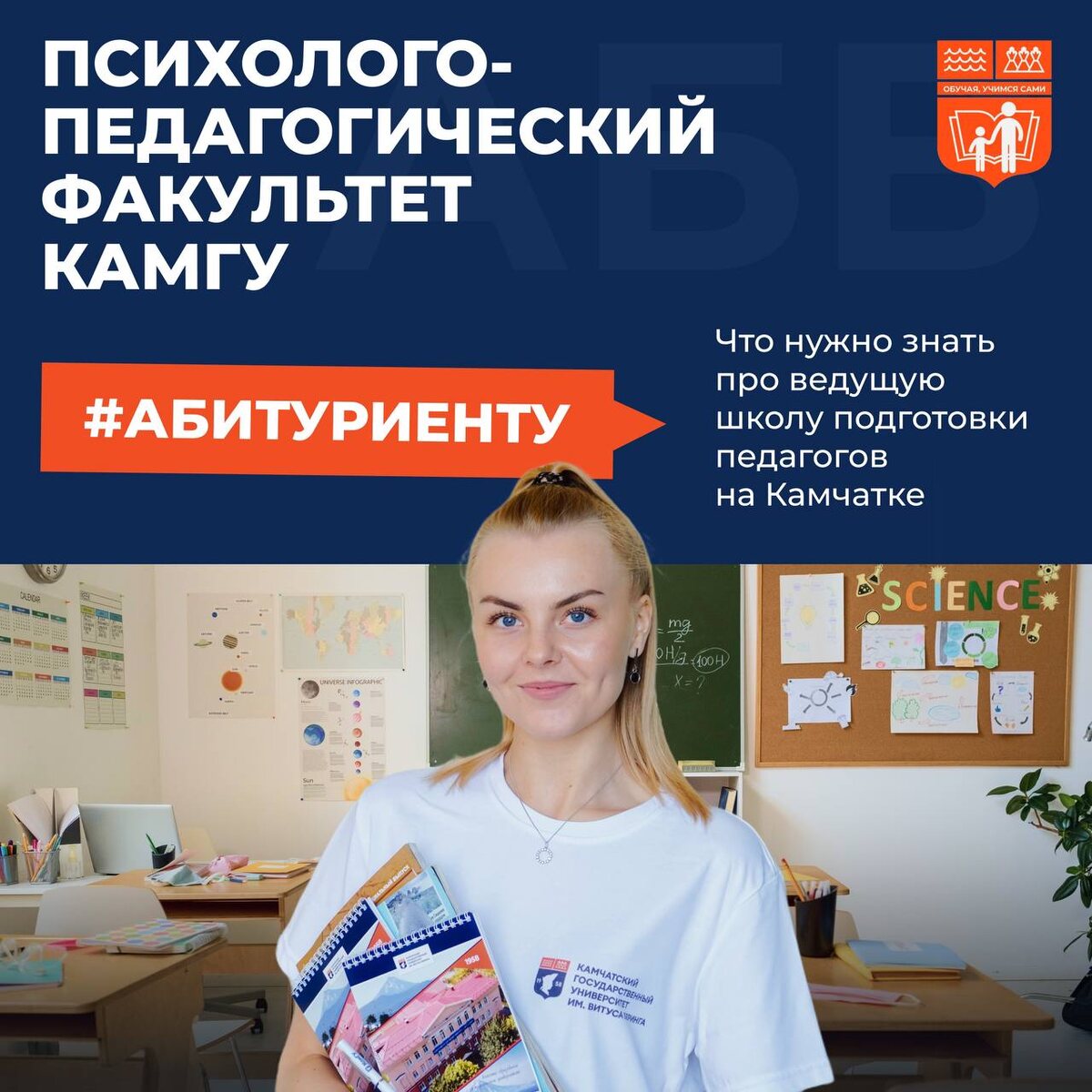 Психолого-педагогический факультет КамГУ — ведущая школа подготовки педагогов на Камчатке 🧡 Здесь готовят тех, кто работает с людьми: помогает, учит, поддерживает, вдохновляет. Хотите строить осмысленную карьеру, быть полезными и расти в сфере образования? Смотрите карточки, выбирайте направление и поступайте в КамГУ. 📲 Минимальные баллы для поступления и подробности о приёме — на сайте. #абитуриентуКамГУ