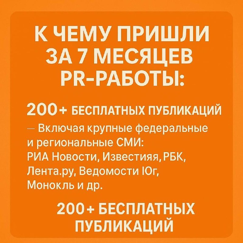 Мой опыт в PR с цифрами Все любят цифры и правильно, предприниматель должен уметь считать всё. PR не исключение. Это такая же инвестиция, как оборудование или команда. Пришло время чтобы расти еще больше и нужно было выйти в публичное поле осознанно Это направление я запустил совсем недавно, но уже могу поделиться результатами. Продукт в моих клиниках сильный, результаты ниже реальные. Но за пределами клиники об этом знали единицы Аналитика за 9 месяцев до работы с PR 🔸16 упоминаний в СМИ 🔸охват 550 000 человек 🔸Медиа индекс 59 🔸 Заметность на минимальном уровне И вот наши результаты за 7 месяцев👆🏻
