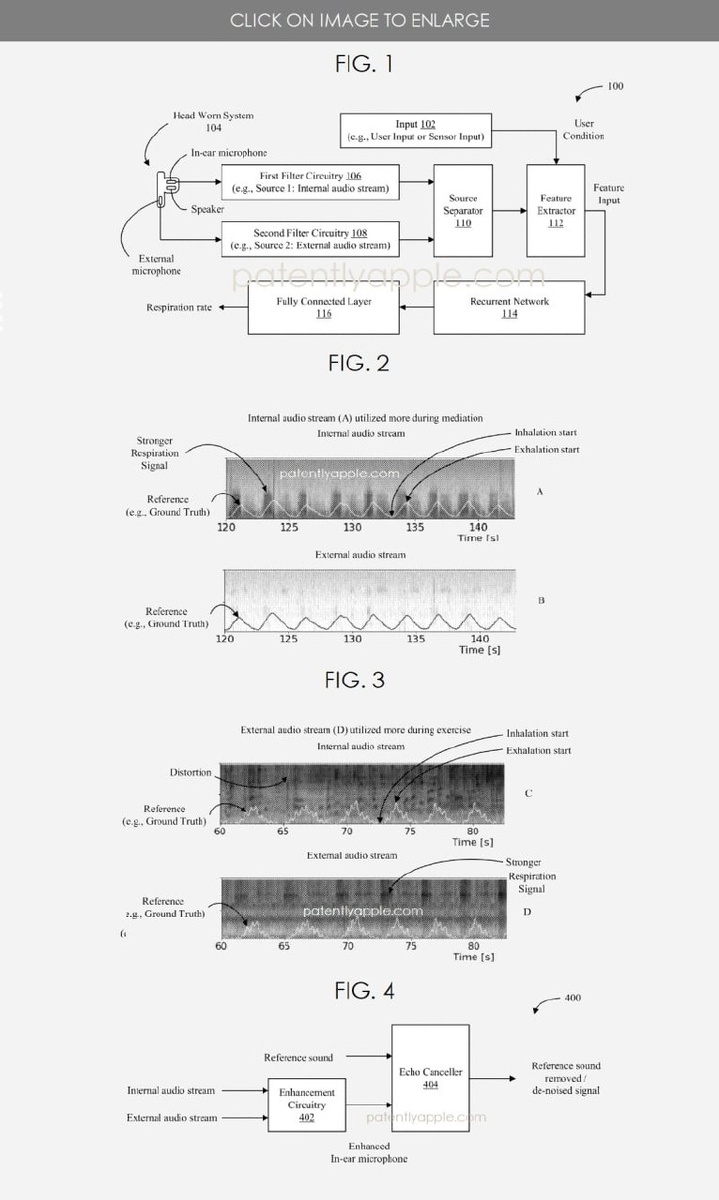 Бюро патентов США опубликовало новую заявку Apple, в которой описывается система мониторинга частоты дыхания для будущих беспроводных наушников AirPods. (via PatentlyApple) Система использует комбинацию внутреннего и внешнего микрофонов в наушниках для точного определения дыхательного ритма пользователя. Внутренний микрофон размещается в ушном канале, а внешний — на корпусе наушника. Такой подход позволяет отфильтровать посторонние шумы и получить чистый сигнал дыхания даже в шумной обстановке. Интересно, что система учитывает различные сценарии использования: от медитации до интенсивных тренировок. Она может получать дополнительные данные от других устройств Apple — смартфона, умных часов или очков, чтобы точнее определять контекст активности. Искусственный интеллект анализирует все эти данные для максимально точного измерения частоты дыхания. Мониторинг дыхания — важный показатель общего состояния здоровья человека. Частота дыхания помогает определить уровень физической нагрузки,