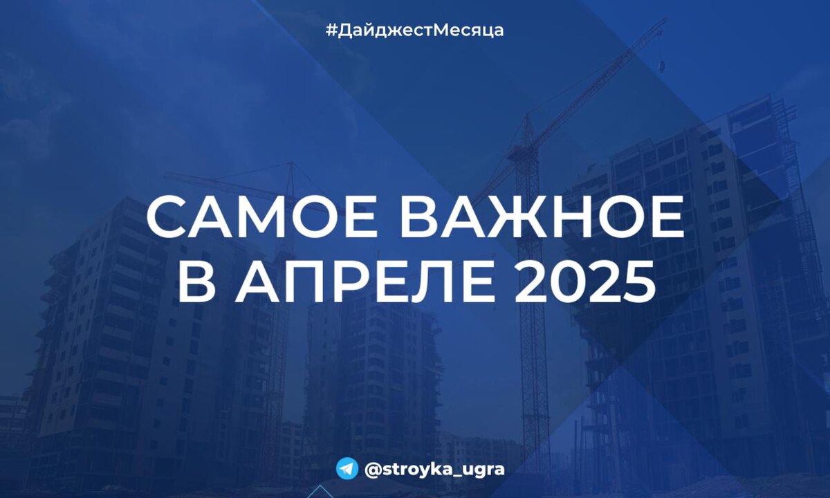 Первый рабочий день месяца отметим традиционным дайджестом, в котором собрали самые важные и полезные публикации за прошедший апрель. ⚡️ Ключевые события: Губернатор Югры представил итоги работы правительства в 2024 году, отметив успехи в развитии стройкомплекса Строительство моста через Обь переходит в финальную стадию В Югре подвели итоги государственной политики в области энергосбережения 🏗️ Строительство и капремонт объектов: Глава региона проверил ход строительства ключевых объектов в Когалыме На координационном совете оценили ход строительства и капремонта учреждений образования в регионе Азат Ислаев проинспектировал работы по возведению социально значимых объектов в Сургуте и Нижневартовске 🛣️ Транспорт и дороги: Уникальная плавучая поликлиника – скоро в Югре! Путепровод в Пыть-Яхе реконструируют в 2025 году Капитальный ремонт подъезда к деревне Шапша: обновляем дорогу к исторической достопримечательности 📟 ЖКХ: В окружной столице прошла III региональная ко