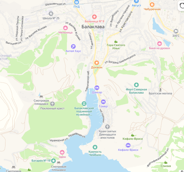 В этой статье погуляем по окрестностям Балаклавы, полюбуемся живописными видами. Посмотрим на цветы, которые сейчас цветут в горной местности. Ну что, пойдём прогуляемся? Статья написана автором канала на Дзен «Прогулки по Севастополю». Копирование или использование материалов без согласования с автором запрещены. Это часть нашей длинной прогулки, которая была 1 мая. После выставки ретроавтомобилей было решено отправиться в Балаклаву. Поехали мы к форту Северная Балаклава. Если кто-то впервые попал на канал и не знает, как Балаклава связана с Севастополем, поясню, что Балаклава — это отдельный город в составе Балаклавского района Севастополя. Когда-то Балаклава входила в состав Севастополя, но уже несколько лет является отдельным городом. Покажу карту Балаклавы чтобы было понятно расположение: К самому форту можно доехать на машине по улице Богдана Хмельницкого, далее держим путь к СТ «Благодатный». Оставляем машину и к форту идём пешком. На автобусе сюда не доехать. Пешком можно