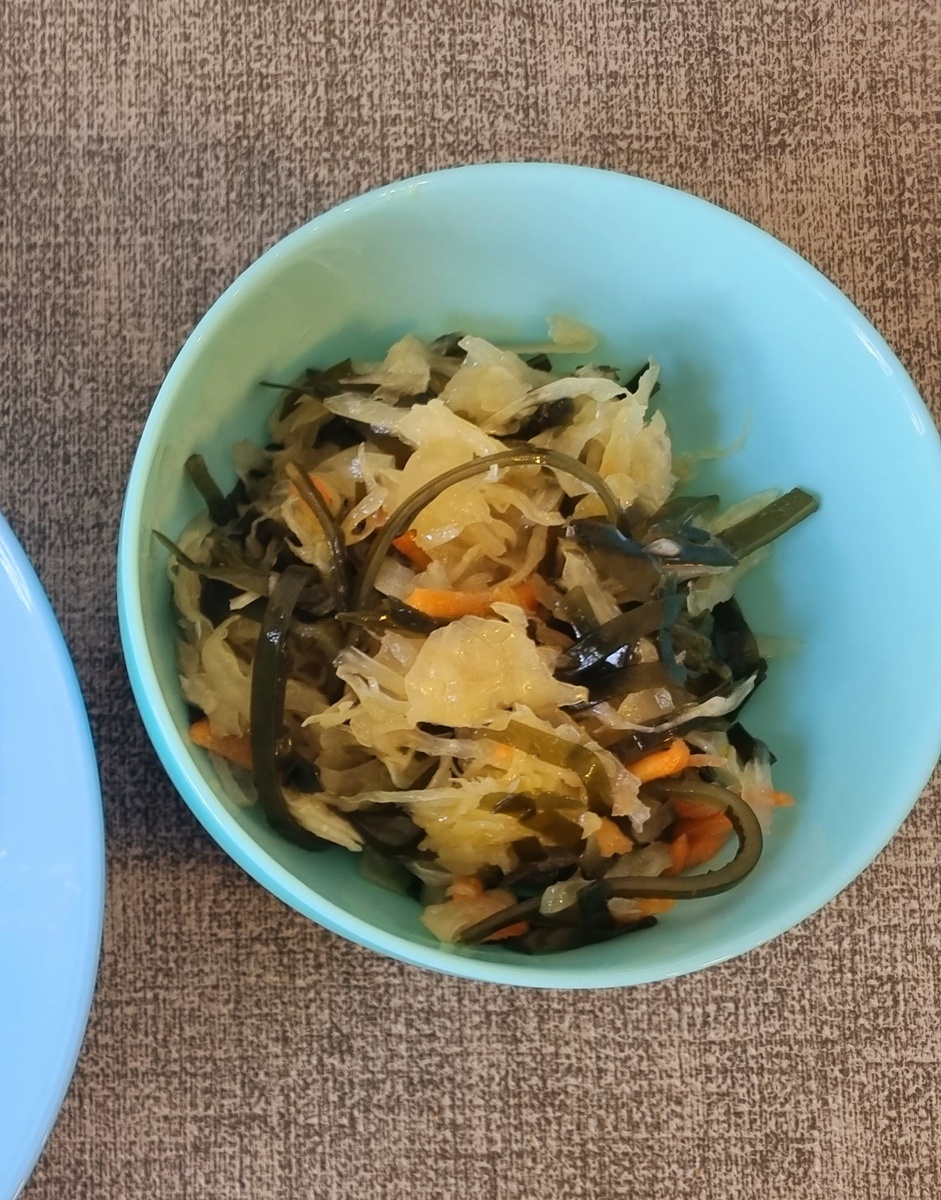 Продолжаем тему полезных салатов. Я конечно понимаю, что это зимний салат. Но вдруг у кого-то осталась еще квашенная капустка в запасах)))) Я сначала сомневалась, можно ли смешать эти две такие разные капусты)) НО! Салат получается вкусным, прямо очень даже очень. Ингредиенты: 100 г квашенной капусты 100 г морской капусты можно немного красного лука для заправки любое нерафинированное масло (лучше пахучее подсолнечное) Все смешиваем, даем настояться минуток 10 и подаем к столу.