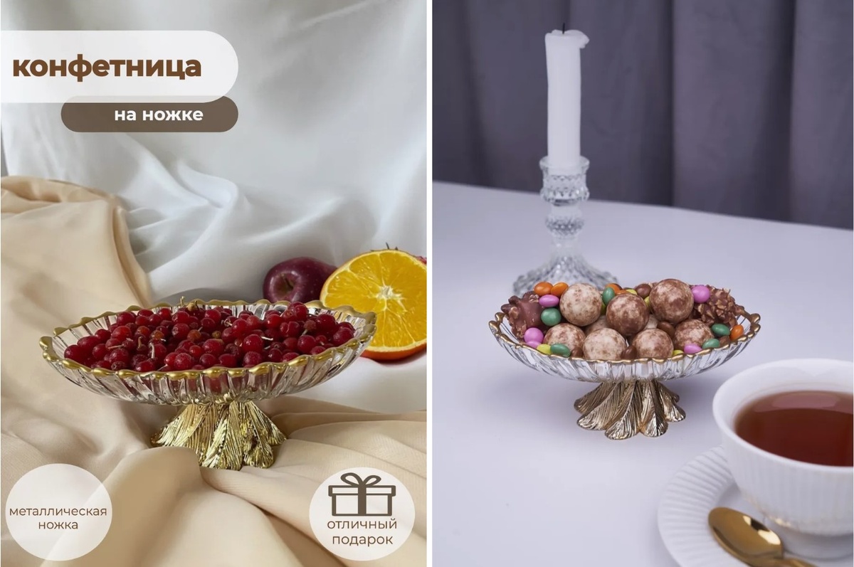 Такая конфетница универсальна: она подойдёт не только для конфет, но и для подачи лимонных долек или даже икры. Это отличный способ разнообразить сервировку и порадовать гостей.