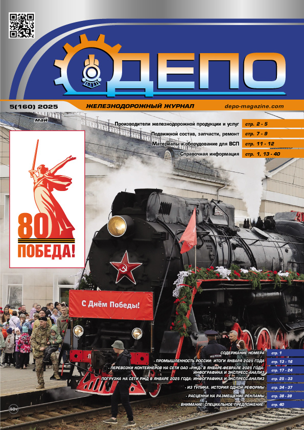 02.05.2025 вышел номер 5(160) май'25 | Скачать бесплатно [PDF 14,3 Мб] - Содержание номера (стр. 1) Производители железнодорожной продукции и услуг (стр. 2 - 5)