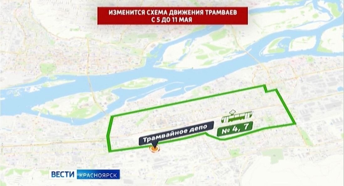 Сегодня и до 11 мая на проспекте имени газеты «Красноярский рабочий» изменится схема движения трамваев