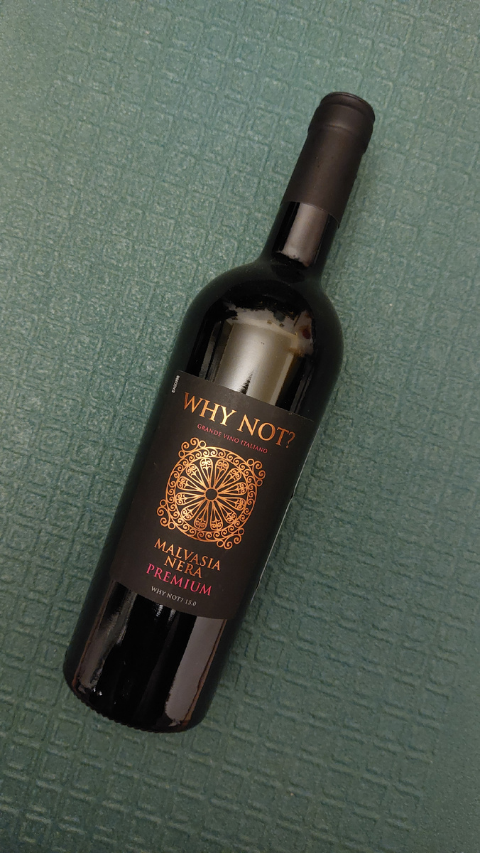 Некоторое время назад я писал про белый мальбек. Для меня черная мальвазия звучит также неожиданно и странно. Но факт остаётся фактом. Такой сорт есть. И сегодня я расскажу подробнее про него на примере Why not? Malvasia Nera Premium 2017. Вино живёт в простой бордосской темной бутылке. Вся "фишка" в оформлении этикетки. Такого количества слов, которые нам "продают" исключительность этого вина одновременно и сразу я давно не припомню. Тут и "премиум", и "grand", что бы они тут не значили. Короче говоря, для скепсиса повод есть. Особенно учитывая цену. Но об этом традиционно в выводах. А так этикетка с одной стороны гармоничная, с другой совершено без смысла. Куда интереснее информация на контрэтикетке. Вино из Апулии. Урожая аж 2017 года, при этом розлито в январе 2024, при этом 15% алкоголя. И можно было бы подумать, что наши что-то напортачили с информацией. Но кусочек родной контрэтикетки все это полностью подтверждает. У меня в основном 1 вопрос. Что происходило с вином без малого