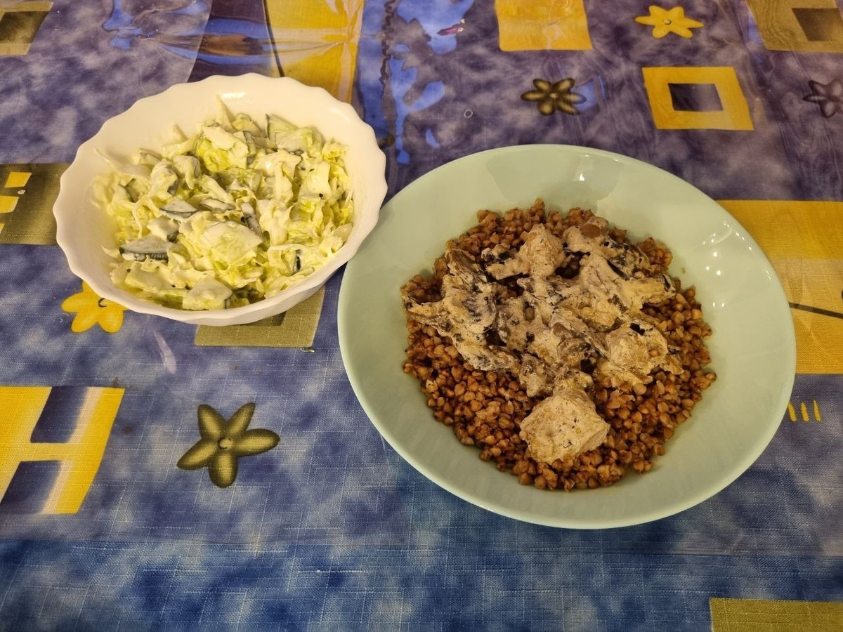 Тут недавно прошлась я по своему меню на день за прошлый год и увидела, сколько много можно было выложить рецептов тех же салатов. Я не выкладывала, потому что думала, да кому же это надо, все итак знают. А потом когда почему-то появились вопросы про яичную намазку и свекольный мусс, я поняла, что многое только мне кажется очевидным, так как я это делаю часто, а вот другие люди никогда этого не делали и поэтому не хнают, что так можно)) Вот и решила я тут повыкладывать рецепты салатов, ну тех которые я люблю добавлять к утренним сложным углеводам))) Хотя и в обед с ужином они хорошо зайдут)) Может для кого-то будет подспорьем, да и мне иногда тоже интересно заглянуть))) Итак, начинаем: У меня бывает два вида нарезки такого салата. Первый - эстетичный)))) Айсберг нарезаем тонкими полосками, Огурец и дайкон натираем на корейской терке или нарезаем тонкими брусочками. Получается очень красиво)) Второй - быстрый Огурцы и дайкон нарезаем четвертинками, айсберг нарезаем шашками. Но неважно к