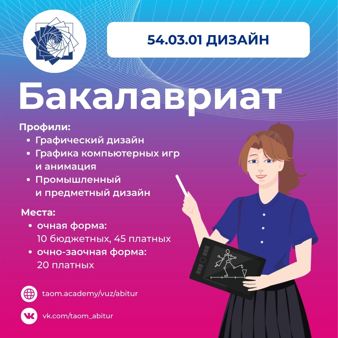 Подробнее об условиях поступления: taom.academy/vuz/abitur.