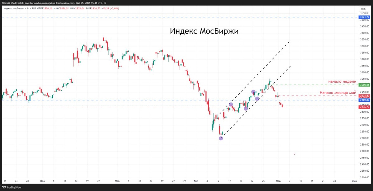 Индекс МосБиржи $MXM5 #IMOEX на прошлой неделе упал на 5,6