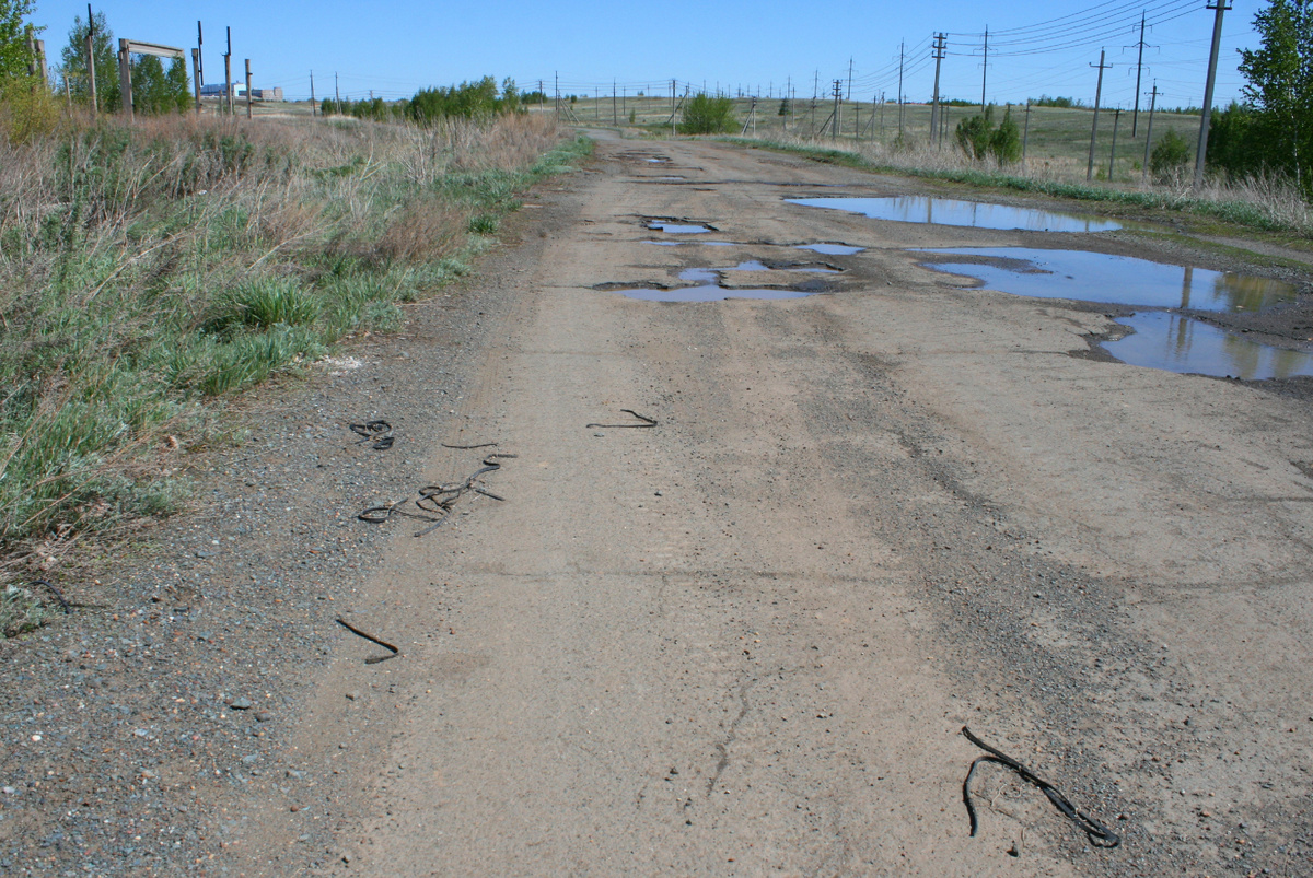 На старой заброшенной дороге валялись резиновые прокладки от каких-то агрегатов законсервированной птицефабрики. Они походили на змей. Будто сами вот-вот вылупились из яиц неведомого змеиного инкубатора. И расползаются по степи. Я объехал их и сказал себе, что надо поосторожней… Жаркий летний день после череды ночных холодов обещает много неожиданностей, в том числе от оживления змеиной жизни. Гадюки, продрогшие в ледяных кустах чилиги, полезут на асфальт согреваться. Подумал – получил! На очередном повороте асфальтовой заброшки грелась молодая змея. Осенью змеи на дорогах безвольны. Они лежат, как… резинки, не шевелясь и не поднимая головы. Весенняя змея намного веселее, несмотря на холод, сковавший ее тело. Она, пусть и вяло, держит голову, наблюдая за ситуацией, за мной, за блестящим на солнце колесом моего велосипеда. Да, поднять голову как летом – энергично, высоко над травой, пока не получается. И все-таки – это уже не осенняя покорность судьбе, обволакивающему сну. В весе