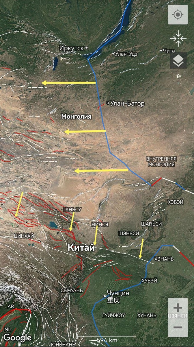 Утром было заметно тектоническое напряжение в районе Китая и Монголии на юго-западном обрамлении Амурской плиты. Картина допускает вероятность землетрясения М5.7-7 в течение 9 дней. ==== In the morning, tectonic tension was noticeable in the area of China and Mongolia on the southwestern rim of the Amur Plate. The picture assumes the probability of an earthquake of M5.7-7 within 9 days.