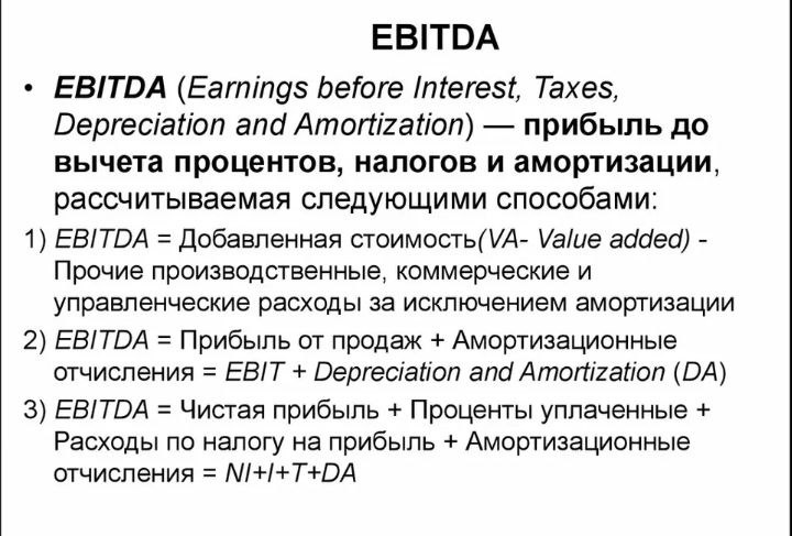 EBITDA — это прибыль компании до того, как из неё вычли проценты, налоги и сборы, износ и амортизацию. Когда этот показатель положительный и со временем растёт, это говорит о развитии предприятия и укреплении его финансового положения.