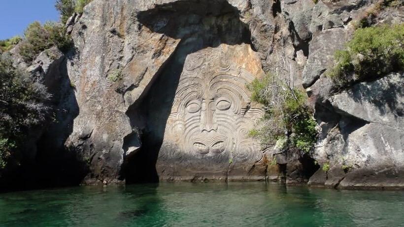 И опять мы начнем наш рассказ с такого сложного имени. Однако на удивление значение не такое уж и страшное – перисто-кучевое облако. Как и большинство первородных жрецов маори, Нгатороиранги пришел на территории северного острова Новой Зеландии из Гаваики. Также он является прародителем племени Нгати-туфаретоа. Территория племени находится в самом сердце острова. Там же находится и знаменитое озеро Таупо с не менее знаменитым заливом со скалой. На этой скале в 1980 году Матахи Брайтвелл вырезал изображение Нгатороиранги. Да и все было не случайно. Место для будущего проекта Матахи приметил еще в 1976 году. По его собственным словам, он сразу увидел зататуированное лицо, вырезанное именно в этой скале. Сложившийся сразу образ требовал немедленного воплощения. К срочной работе автора подтолкнули заветы родной бабушки. Она мечтала, чтобы ее внук однажды вырезал из дерева изображение первопредка ее племени. Вот только из дерева не вышло, так как подходящего не нашлось, а вот скала смогла
