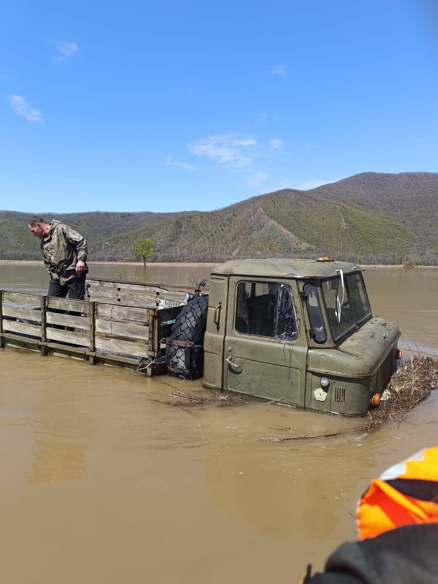 Пожарные сняли из затонувшего автомобиля ГАЗ-66 мужчину, который не смог самостоятельно выбраться и отчаянно ждал помощи посреди реки. Спасатели доставляли медицинского работника и продукты питания в село Краснояровка, которое осталось без автомобильного сообщения из-за паводков. Автомобиль, в котором стоял мужчина, утонул почти полностью — торчала лишь часть кабины. В кузове спасенный стоял в воде. Он объяснил пожарным, что двигался по подтопленной дороге и автомобиль заглох. Сообщить о необходимости своей эвакуации он не смог. А из-за большой глубины перелива не смог сам добраться до берега. Пожарные эвакуировали водителя и доставили его в безопасное место. Фото и видео: @primgochs 🟥Подписаться | Предложить новость