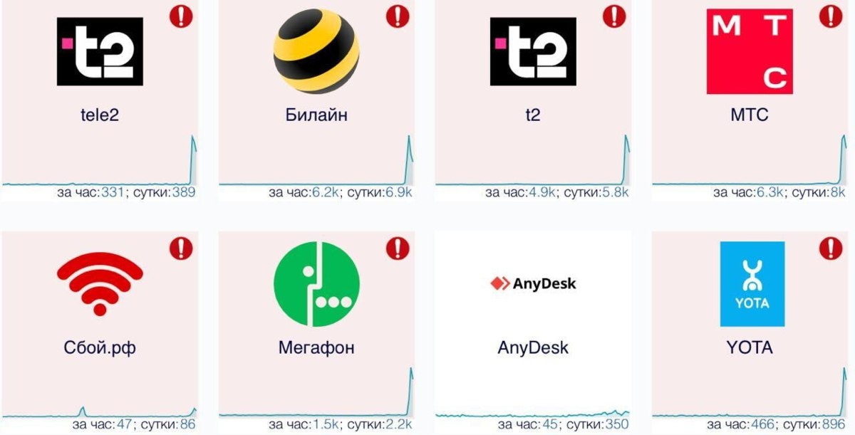 Пользователи сообщили о сбое в работе сети МТС, «Билайна», «Мегафона», T2.