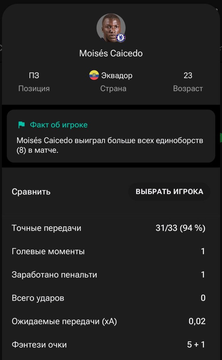 Caicedo — 8 выигранных дуэлей (больше всех)