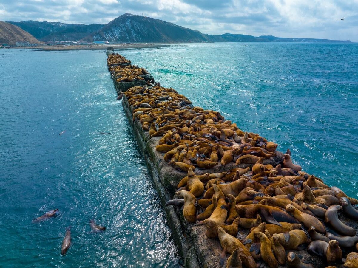 Сахалин, особенно район Невельска, притягивает туристов и исследователей уникальными природными явлениями. Одним из самых завораживающих и необычных мест является лежбище сивучей. Сивуч — крупнейший представитель семейства ушастых тюленей, также его называют северный морской лев Стеллера. Они привлекают внимание своим величественным обликом и внушительными размерами. Их можно наблюдать в естественной среде обитания на Сахалине, куда они приходят каждой весной и остаются до июня. Средняя длина тела взрослого самца может достигать трех метров, а их вес иногда переваливает за тонну. Лежбище сивучей - это место на побережье с большим скоплением их представителей. В качестве лежбища на Сахалине они выбрали брекватер (волнолом, предназначенный для защиты береговой линии), расположенный в городе Невельск. Здесь сотни этих внушительных животных лежат под открытым небом, наслаждаясь как солнечными ваннами, так и относительно прохладной погодой. Лежбище - это не просто место скопления животных,