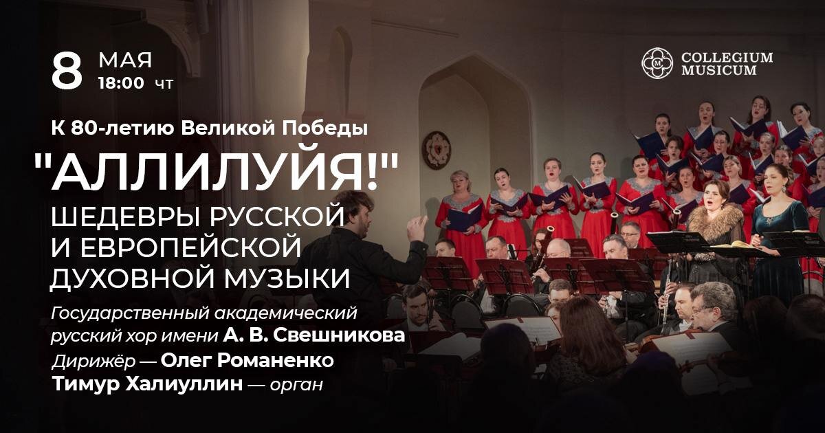 📍 Афиша концертов Collegium Musicum на ближайшую неделю! 8 мая / четверг, 20:00 К 80-летию Великой Победы АЛЛИЛУЙЯ! Шедевры русской и европейской духовной музыки 10 мая / суббота, 18:00 Орган-оркестр: Бах, Гендель, Вагнер, Григ 11 мая / воскресенье, 15:00 От Карпат до Арарата: орган, дудук и древние голоса 11 мая / воскресенье, 19:00 Музыка вселенной: Бах, Циммер, Эйнауди 🔥Скидка 25% по промокоду АЛЛИЛУЙЯ