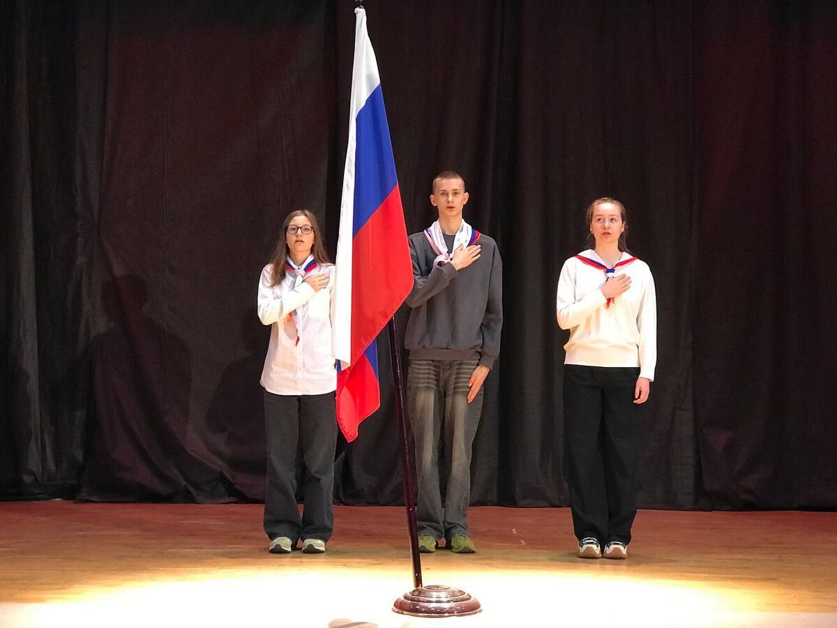 Подъём флага 🇷🇺 Начинаем утро понедельника с торжественной церемонии поднятия флага и исполнения гимна Российской Федерации. 👫 В знаменной группе учебного корпуса 4 — ученики 8-9 классов, активисты школы: Анастасия, Аглая. Знаменосец — Филипп. ✨ Всем успешной учебной недели! #школа1534 #донм #РоссияРодинаМоя