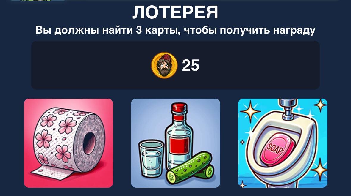 🧔♂️ Новое комбо в BUMS. 🗂 Инструкция: 1️⃣ Из главного меню перейди в раздел «Город». 2️⃣ В меню «Город» нажми на кнопку «Лотерея». 3️⃣ Купи карточки, как на фото, и получи бонус. 🔠 Вступить в нашу банду [ЖМИ] 📺 Коды из видео: 🔜 Коды Blum 🔜 Коды BUMS Канал • Чат • Игры • Stars • Листинг