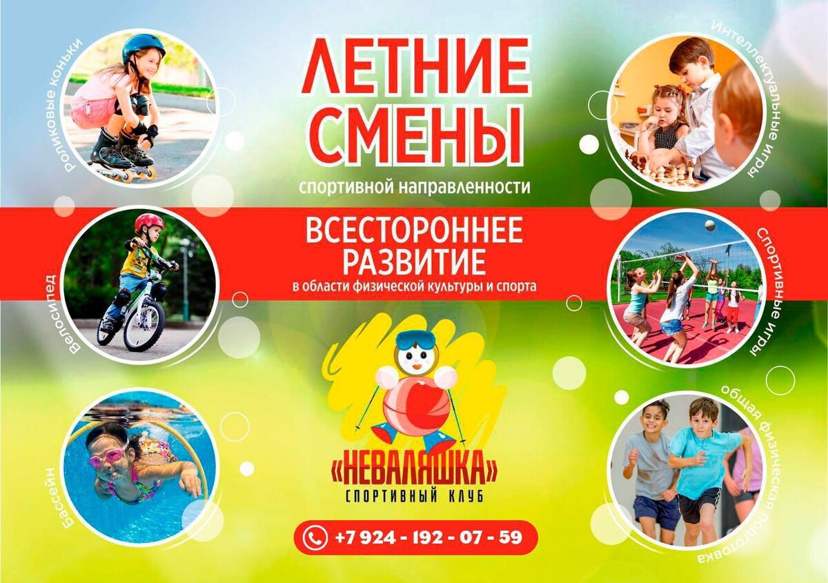 Лето – время приключений, новых впечатлений и, конечно же, заботы о здоровье наших детей. Спортивный клуб «Неваляшка» приглашает мальчиков и девочек провести летние каникулы не только весело, но и с пользой для здоровья и физического развития. Мы гордимся тем, что предоставляем разнообразную спортивную программу, способствующую всестороннему развитию каждого участника. Общая физическая подготовка (ОФП) лежит в основе всех наших программ. ОФП не просто укрепляет здоровье, но и развивает координацию, гибкость, силу и выносливость. Наши опытные тренеры помогут каждому ребенку найти удовольствие в физических упражнениях, научат безопасным и эффективным техникам тренировок. Прогулки на велосипедах не только развивают мышцы и улучшают работу сердечно-сосудистой системы, но и дарят массу положительных эмоций. В ходе летних смен мы организуем безопасные велопоходы под руководством опытных инструкторов на спортивно-туристическом комплексе Горный Воздух. Походы в аквапарк – это не только идеальн