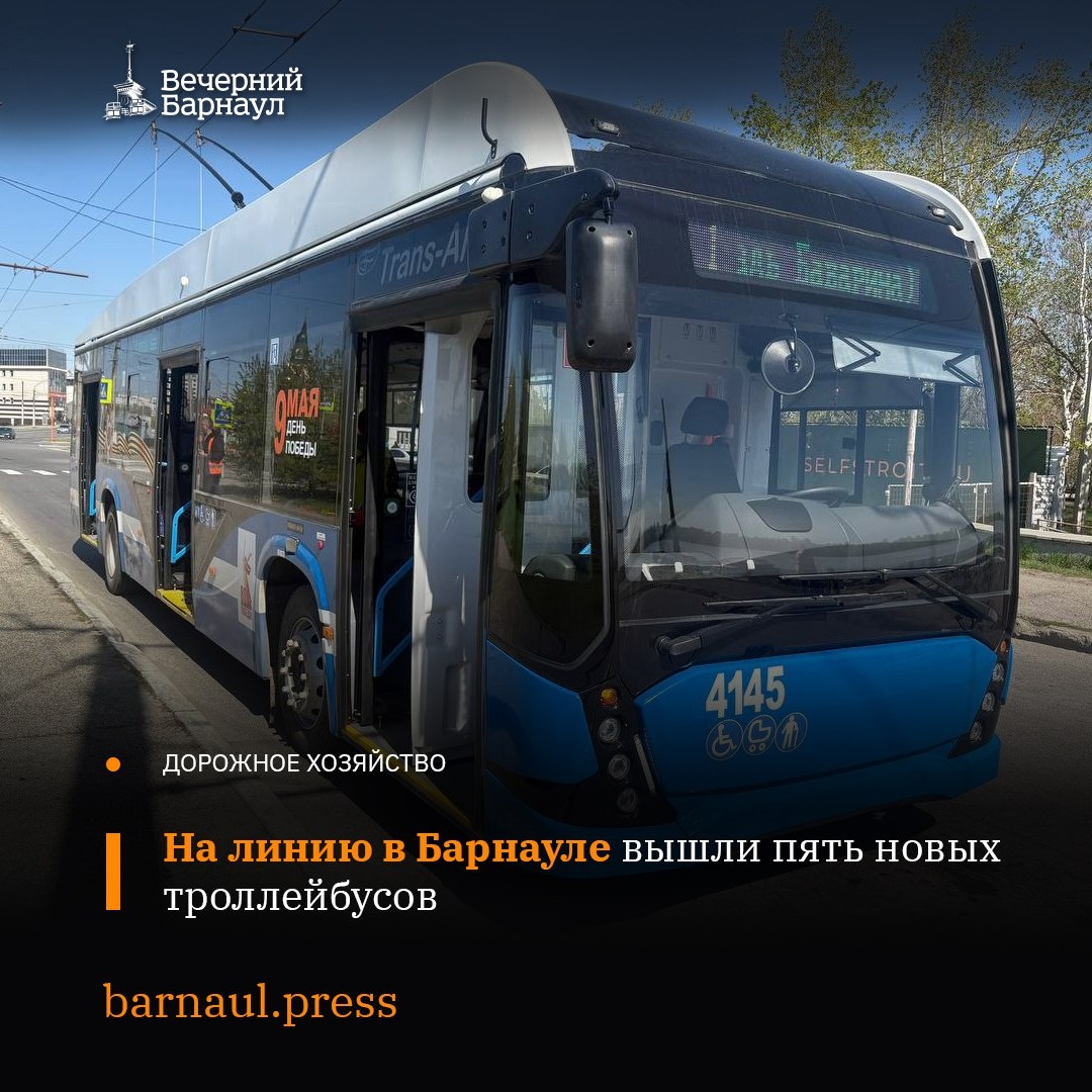 5 мая на улицы Барнаула вышли новые троллейбусы. Три из них отправились по маршруту №7, а ещё два — по маршрутам №1 и №6.
