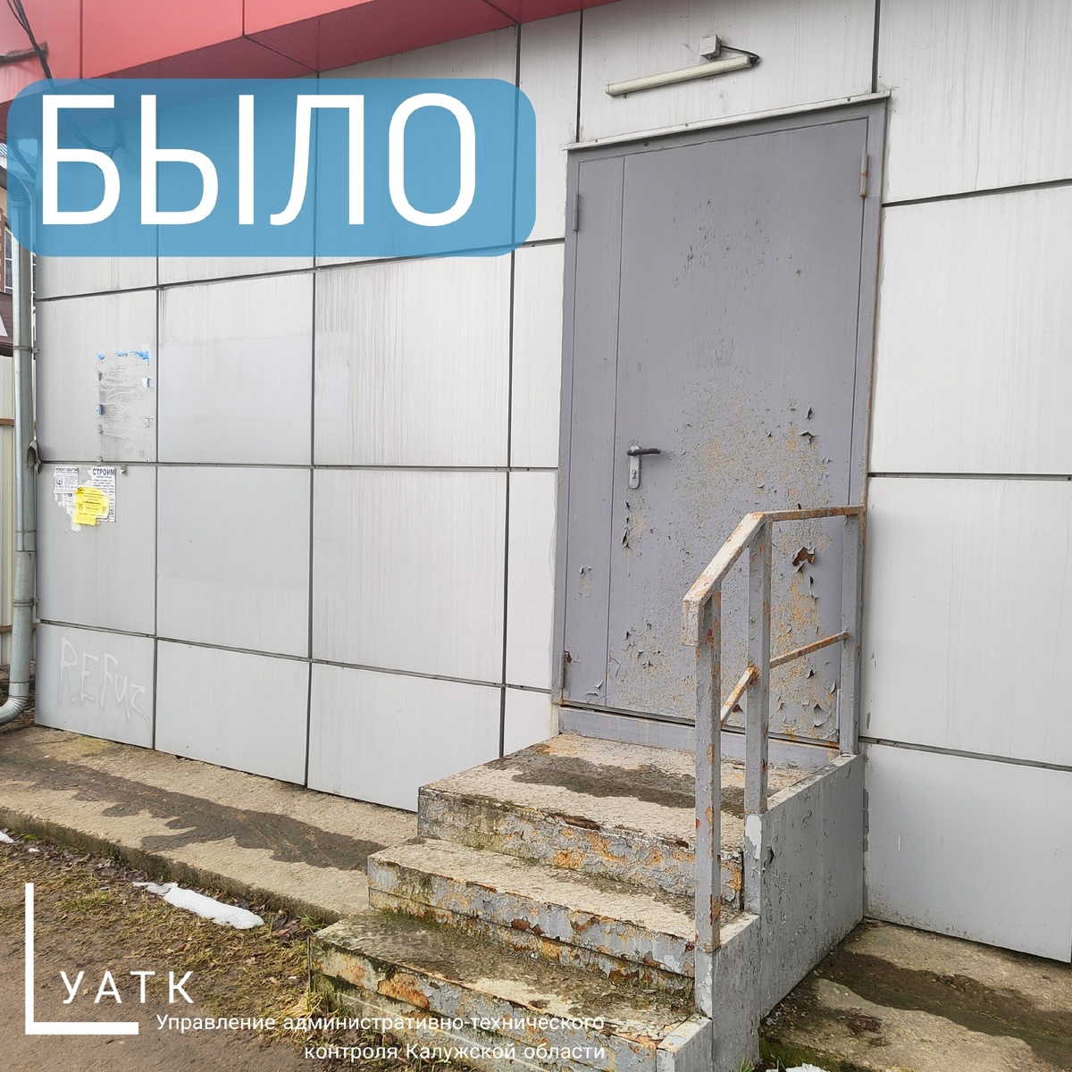 📍В ходе рассмотрения обращения от неравнодушных граждан о ненадлежащем содержании фасада одного из зданий в г. Юхнов было зафиксировано ряд нарушений: некрашеное основание порога и наличие следов ржавчины на двери.
