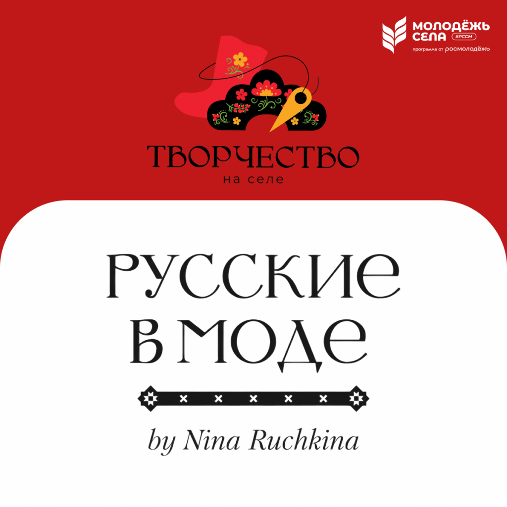 Чтобы ещё больше молодых дизайнеров и ремесленников смогли рассказать о своих работах на всю страну и открыть новые возможности для развития своего дела, Российский союз сельской молодежи регистрацию на Всероссийский конкурс «Творчество на селе» до 12 мая. Подать заявку можно по ссылке: https://xn--80ahddxdcqb6a6ioc.xn--p1ai/. Подробную информацию можно прочитать по ссылке: https://t.me/molodezh_sela/7952 Победители смогут показать свою продукцию на стендах Универмага Национального центра «РОССИЯ», пройти стажировку в топовых студиях дизайна и получить множество других ценных призов от партнёров проекта. Один из партнёров — бренд «Русские в моде» от дизайнера Нины Ручкиной. «Русские в моде» — это коллекции платков, посвящённые культурному достоянию России. Шедевры искусства, традиционные промыслы и ремёсла, региональные концепции в контексте современных традиций — всё это автор переносит на свои изысканные изделия, раскрывая уникальность каждого уголка нашей необъятной страны. Не упуст