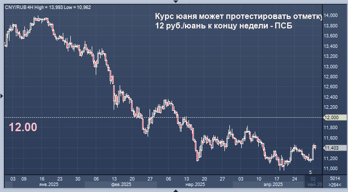 Курс юаня может протестировать отметку12 руб./юань к концу недели - ПСБ