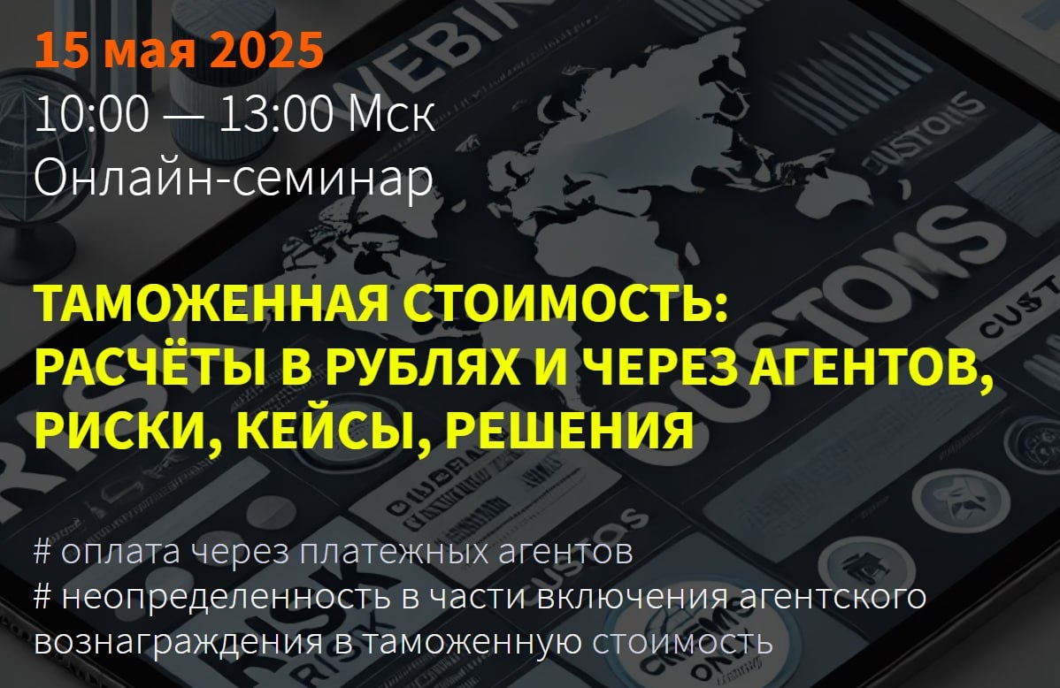 ⚡️ Коллеги, анонсируем онлайн-семинар «Таможенная стоимость: расчёты в рублях и через агентов. Риски, кейсы, решения».