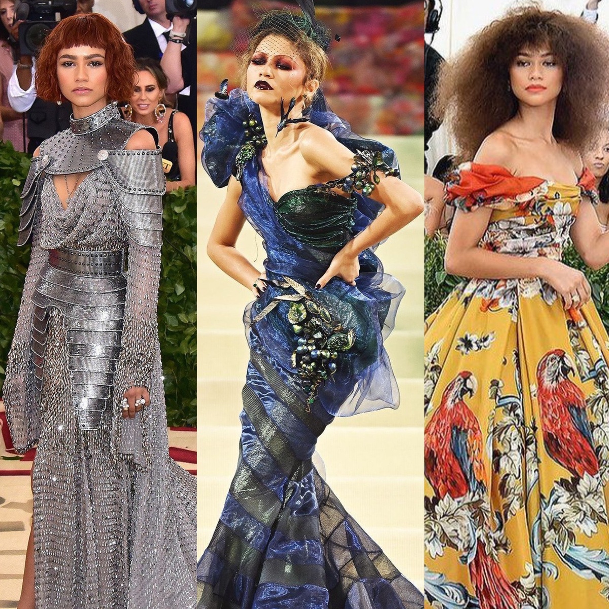 Если Met Gala — это модный театр, то Зендея в нём всегда главная актриса. Каждый её выход — продуманное высказывание, стильный манифест и постановка, достойная оваций. Неудивительно, что её образы стабильно попадают в топы лучших — и, честно говоря, врезаются в память сильнее, чем сама тема бала. Её дебют на ковровой дорожке Met Gala состоялся в 2015 году. Тогда Зендея появилась в коротком платье Fausto Puglisi с солнцами, словно древняя богиня, спустившаяся на землю. Уже в этом образе читалась главная черта её стиля — игра, смелость и внутренняя уверенность. В 2016 году Зендея выбрала золотое платье на одно плечо от Michael Kors. Платье имело высокий воротник и было покрыто блестками, соответствуя футуристической теме вечера. Образ завершала гладкая причёска в стиле Джозефины Бейкер - — знаменитой американской актрисы, певицы и танцовщицы 1920–30-х годов. Эта гладкая округлая форма, напоминающая «гриб» или «чашу», с идеальной линией среза и драматичным изгибом — один из её культовых