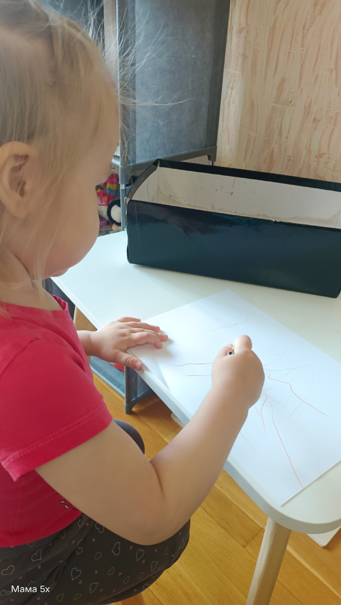 Сразу учу и карандаши держать правильно, пока не всегда она их берет как надо, но это дело техники. Пару десятков раз переложить карандаши правильно в ручку, и запомнит.